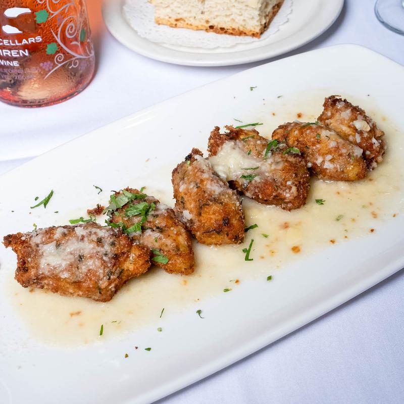 Crispy fried calamari, served with our light spicy marinara basil sauce and caper aioli