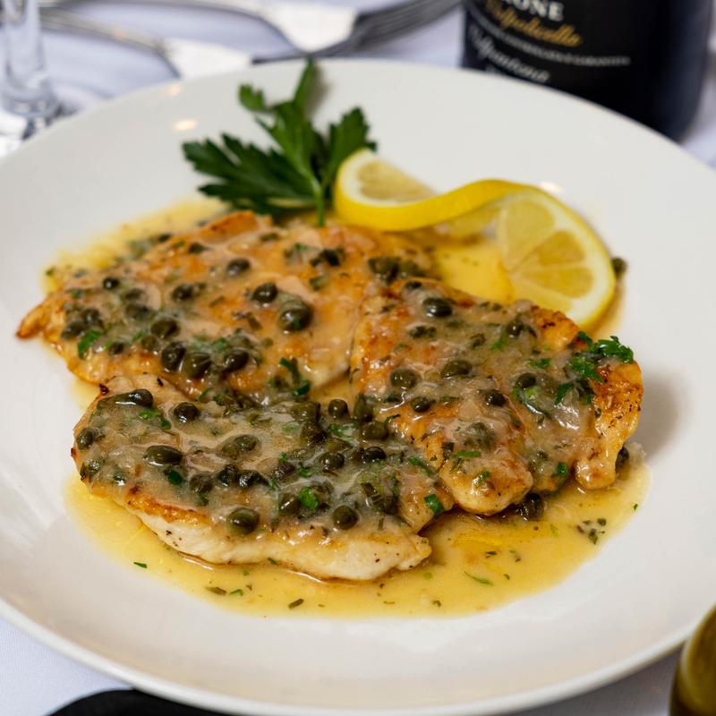 Free range chicken breast sautéed with lemon butter and caper sauce