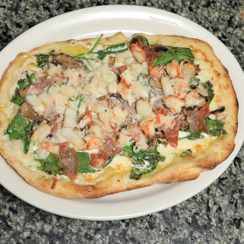 White with shrimp, scallops, prosciutto, mushrooms, and spinach